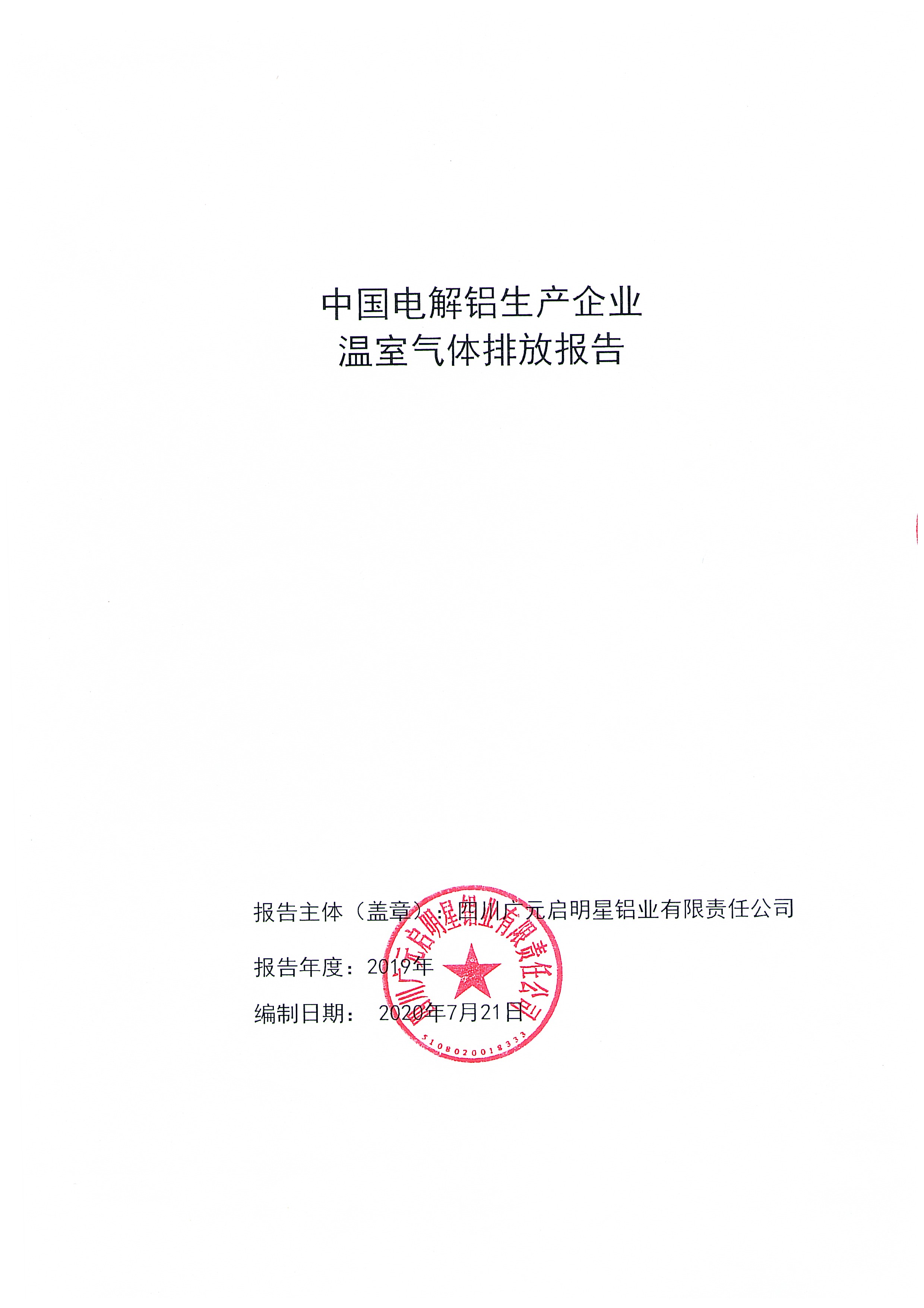 启明星公司2019年温室气体排放报告